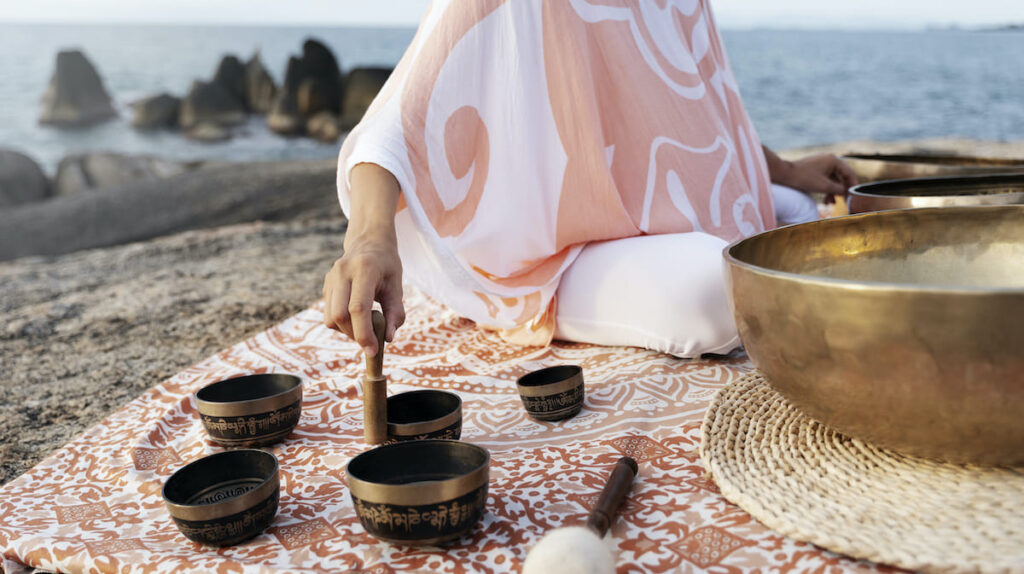 The sound and vibration of singing bowls are believed to have therapeutic effects on the body and mind. The harmonious tones can induce a state of deep relaxation, reduce stress, and promote emotional balance. The vibrations are thought to resonate with the body’s energy centers or chakras, facilitating the release of blockages and promoting overall well-being.